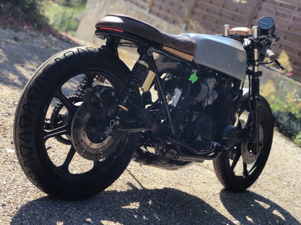 La Kawasaki en question est en premier lieu la première d’une série de transformations audacieuses. Elle a été conduite jusqu’à un changement radical du cycle pour donner naissance à un caractère unique et moderne. Pour l’artisanat, nous avons installé un insert boiserie tant sur le guidon que sur le pourtour de la selle, apportant à l’environnement quelque chose de fait main et de naturel qui contraste avec la variété sublime du café racer. Quant à son équipabilité, elle a été pensée avec un moderne gris Nardo, haut avec des arcs dorsaux perchés. Elle équipe aussi une ligne d’échappement 4-en-1 sur-mesure en acier inox dont un pot SC Project pour une douce mélodie.